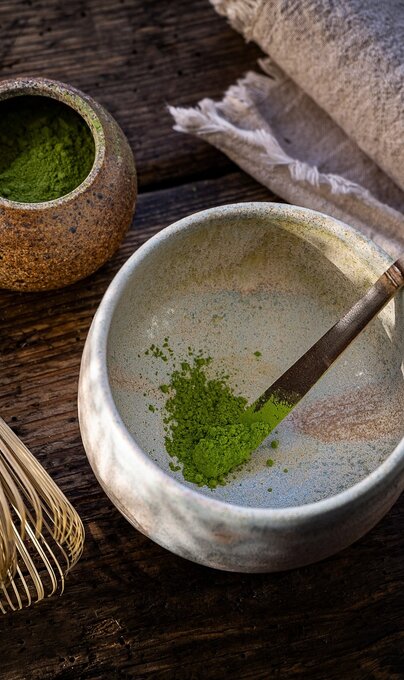 Das japanische Wort «Matcha» steht für gemahlenen Grüntee. Ursprünglich stammt das Pulver aus China. Anders als bei herkömmlichem Grüntee wird bei Matcha das ganze Teeblatt zu einem sehr feinen Pulver gemahlen, mit Wasser verrührt und getrunken.